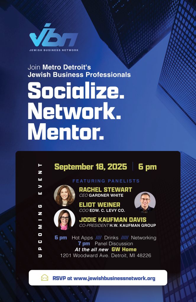 Sign up to connect with Metro Detroit’s Jewish Business Professionals at our semi-annual relationship building event.